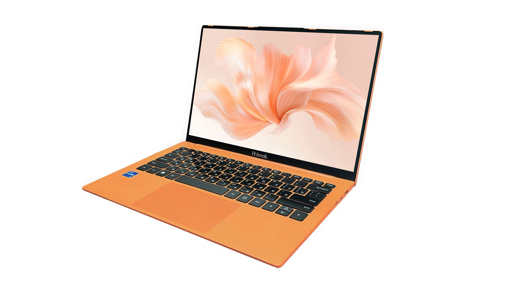 Визуально он выбивается из привычного ряда. Яркий оранжевый корпус добавляет устройству характер и делает его заметным на фоне стандартных чёрных и серых ноутбуков.