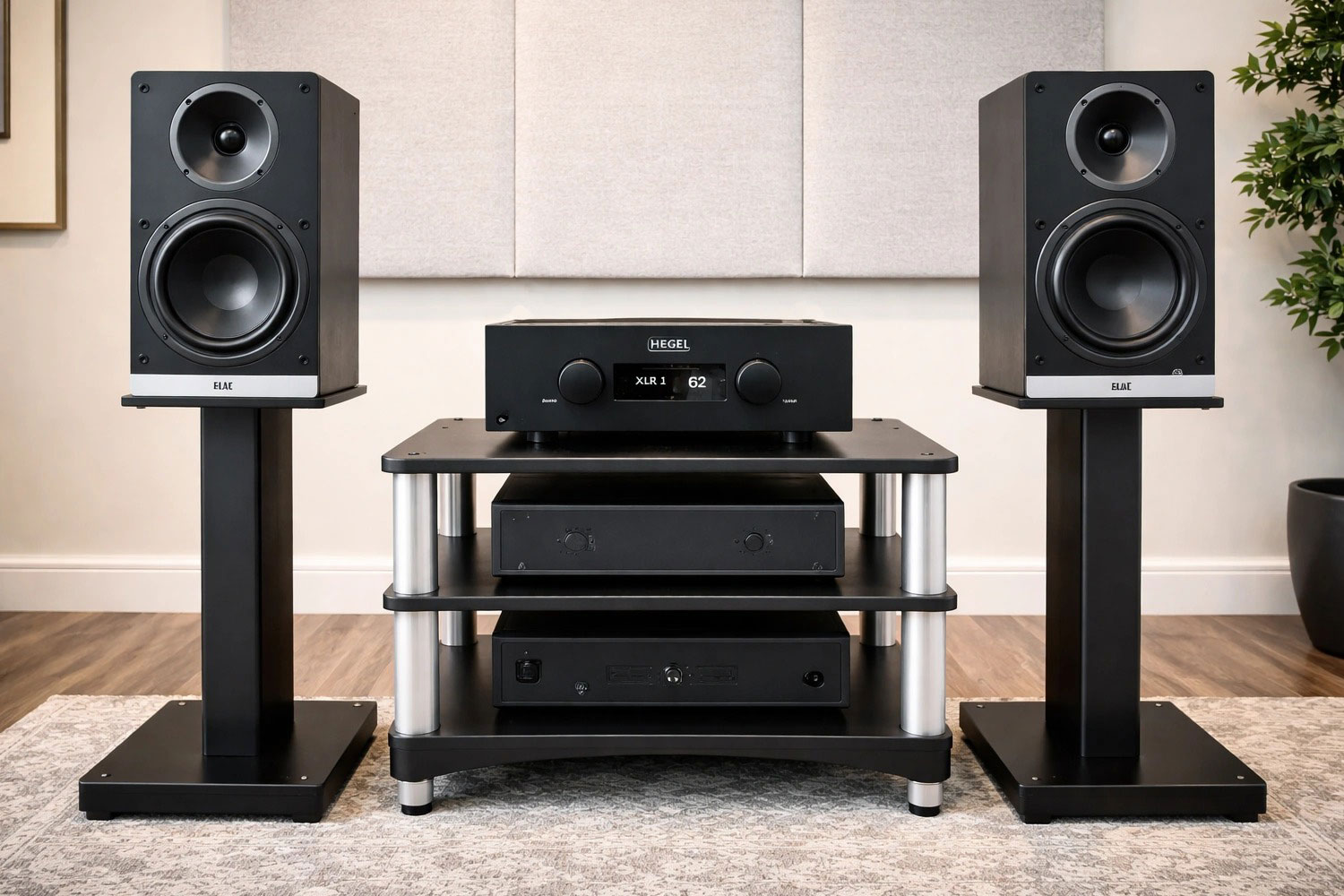 Крупный низкочастотный динамик даёт основу и глубину, твитер добавляет детали и ясность, кроссовер аккуратно распределяет частоты между ними, а встроенный усилитель держит всё это под контролем, чтобы звук оставался собранным и цельным.